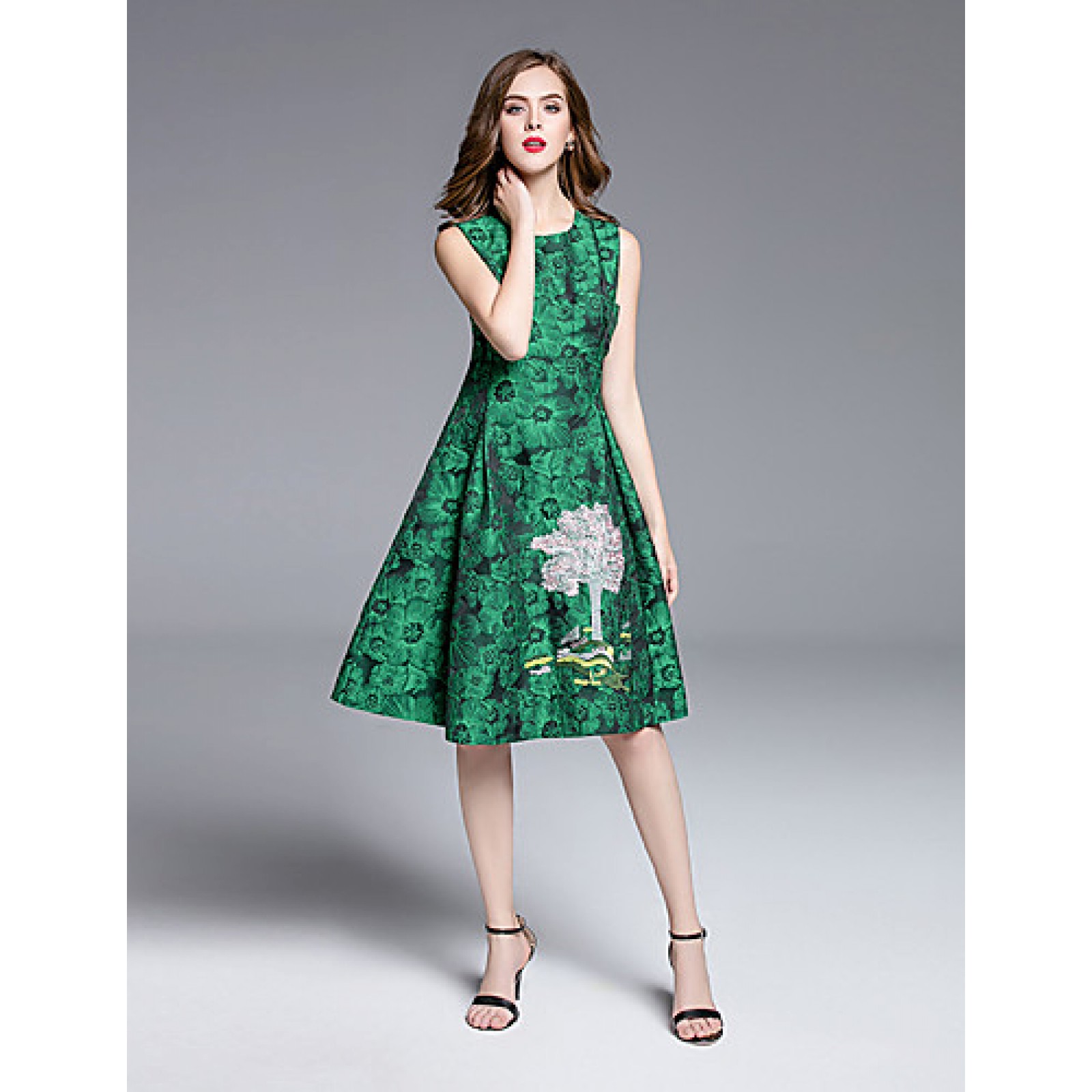 Boutique S Women's Formal Sophisticated Sheath DressPrint Round Neck Knee-length Sleeveless Pink / Green Summer