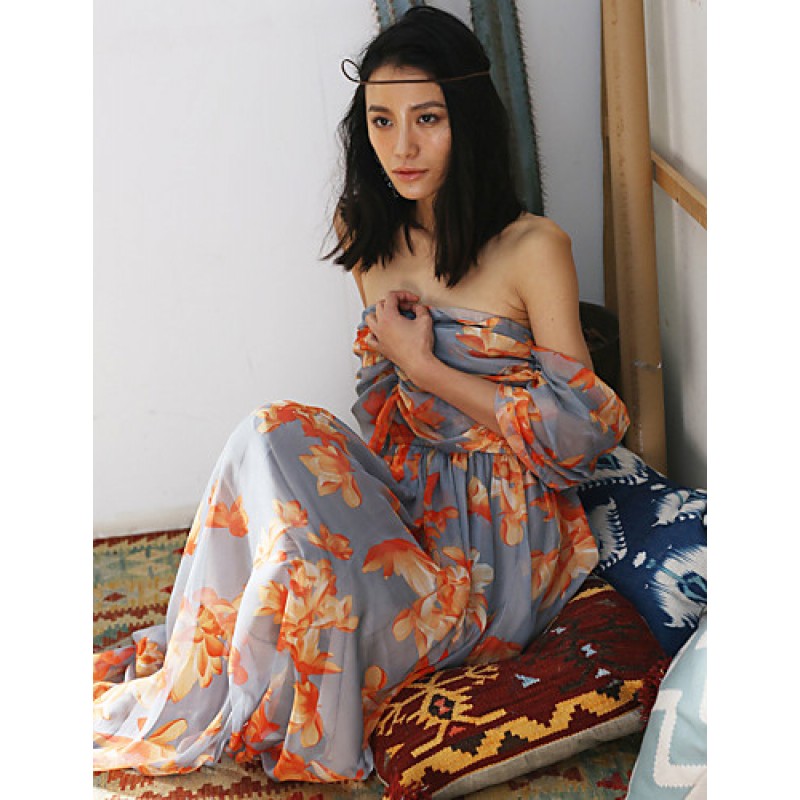 SINCE THEN SIN CE THEN Women's Sexy / Boho Floral Swing Dress,Strapless Maxi Polyester