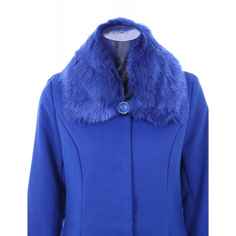 Women's Plus Size Coat,Solid Shirt Collar Long Sleeve Winter Blue / Black Wool / Others Thick