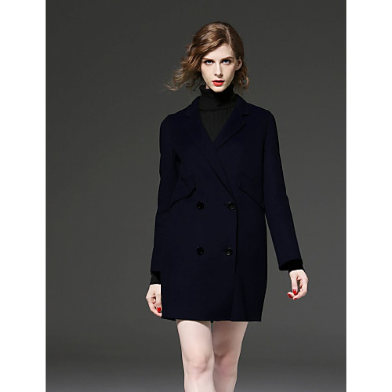 Work Simple / Print Peaked Lapel Long Sleeve Winter Red / Black / Green Faux Fur / Polyester Medium