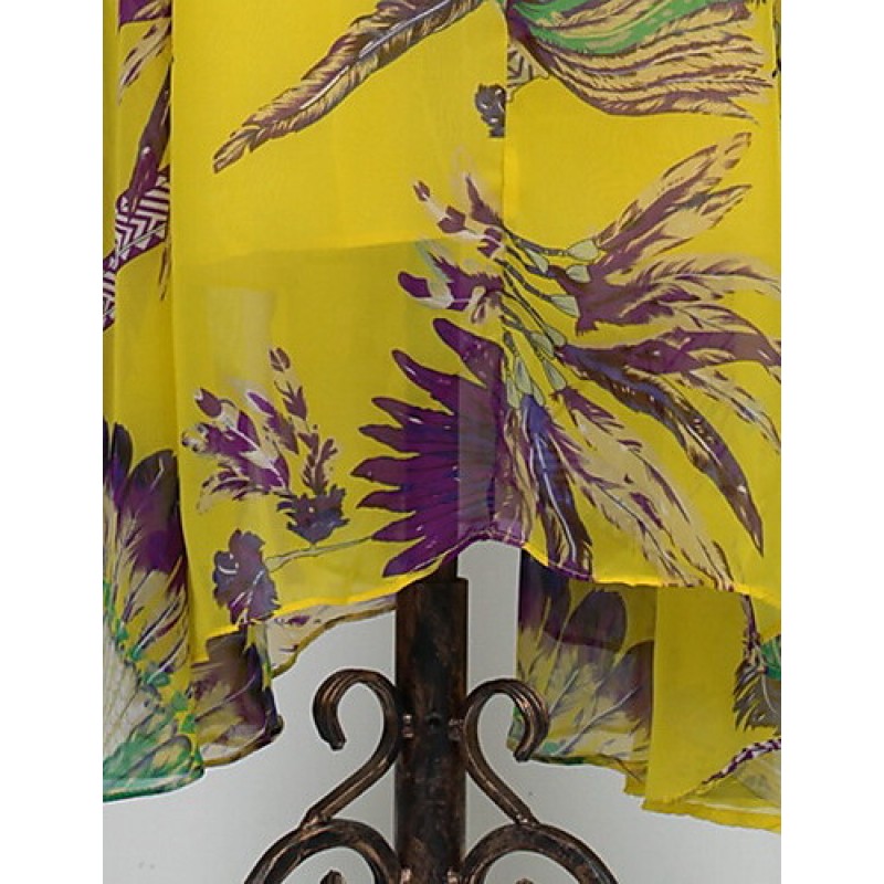 - Product Code: Beach Swing Dress,Print Maxi Sleeveless Yellow Summer Inelastic