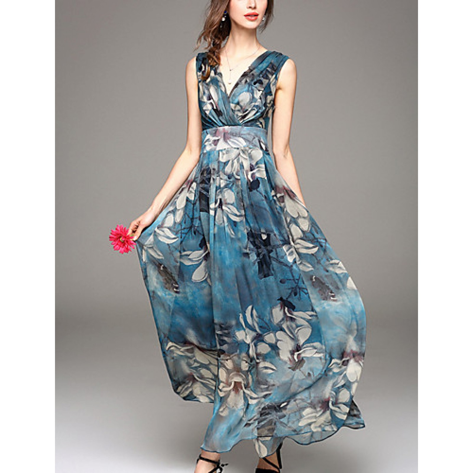 - Product Code: Going out Simple Sheath Dress,Print V Neck Maxi Sleeveless Blue