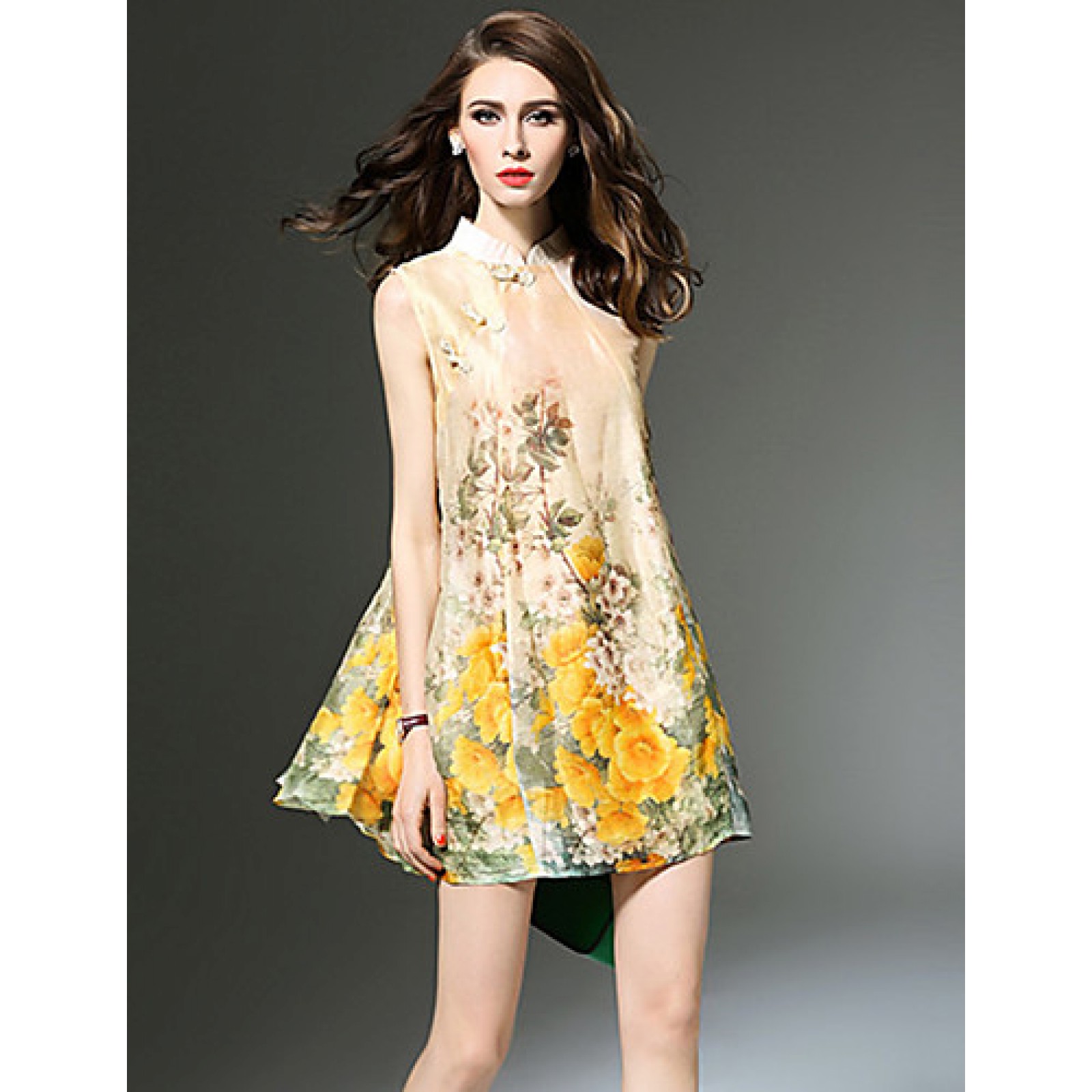 - Product Code: Women's Vintage Floral A Line / Loose Dress,Stand Above Knee Cot