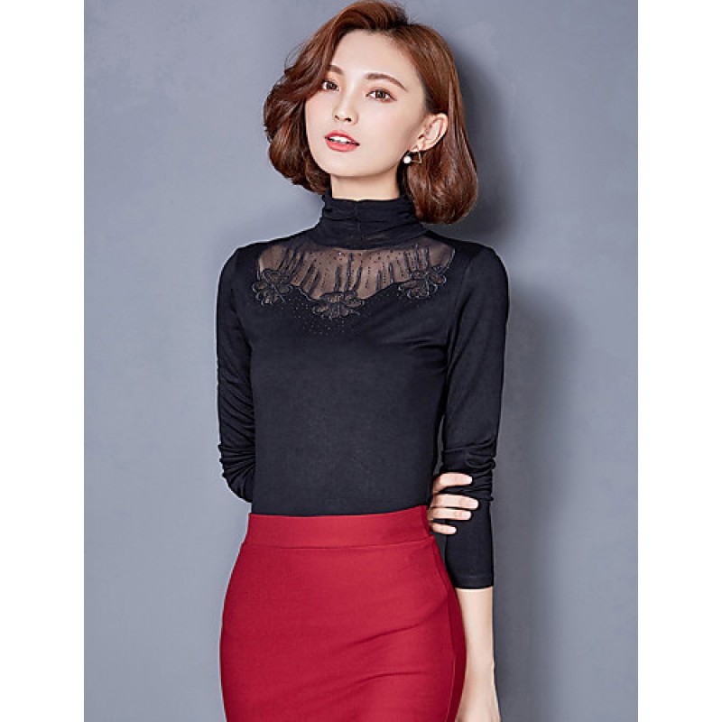 Women's Plus Size / Casual Street chic Fall Blouse Lace Embroidered Turtleneck Red / White / Black Rayon
