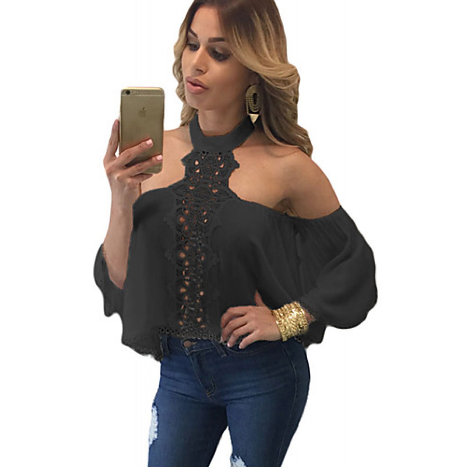- Product Code: Women's Black Chocker Neck Bare Shoulders Flare Crop Top