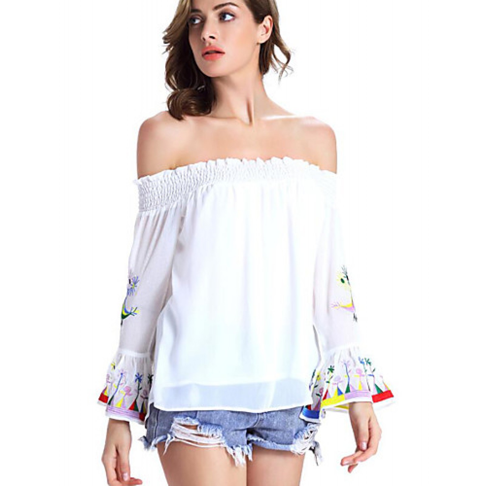 - Product Code: Women's Casual/Daily Sexy Fall Blouse,Embroidered Boat Neck Long