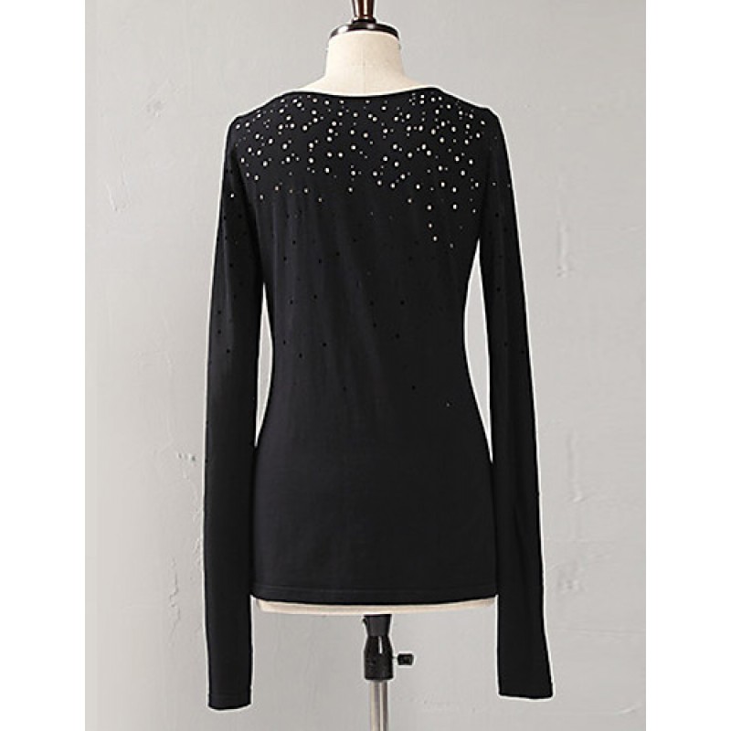 Women's Casual/Daily Simple Spring / Fall T-shirtSolid Round Neck Long Sleeve Black Cotton / Spandex Medium